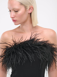 ANNA OCTOBER top in black, corset design, viscose construction, faux feather trim, strapless, full length, form fit. Made in Ukraine 96% Viscose 4% Elastane Standard Sizing Model is 5'9" wearing size S. Bust: 32" Waist: 24" Hips: 34"
