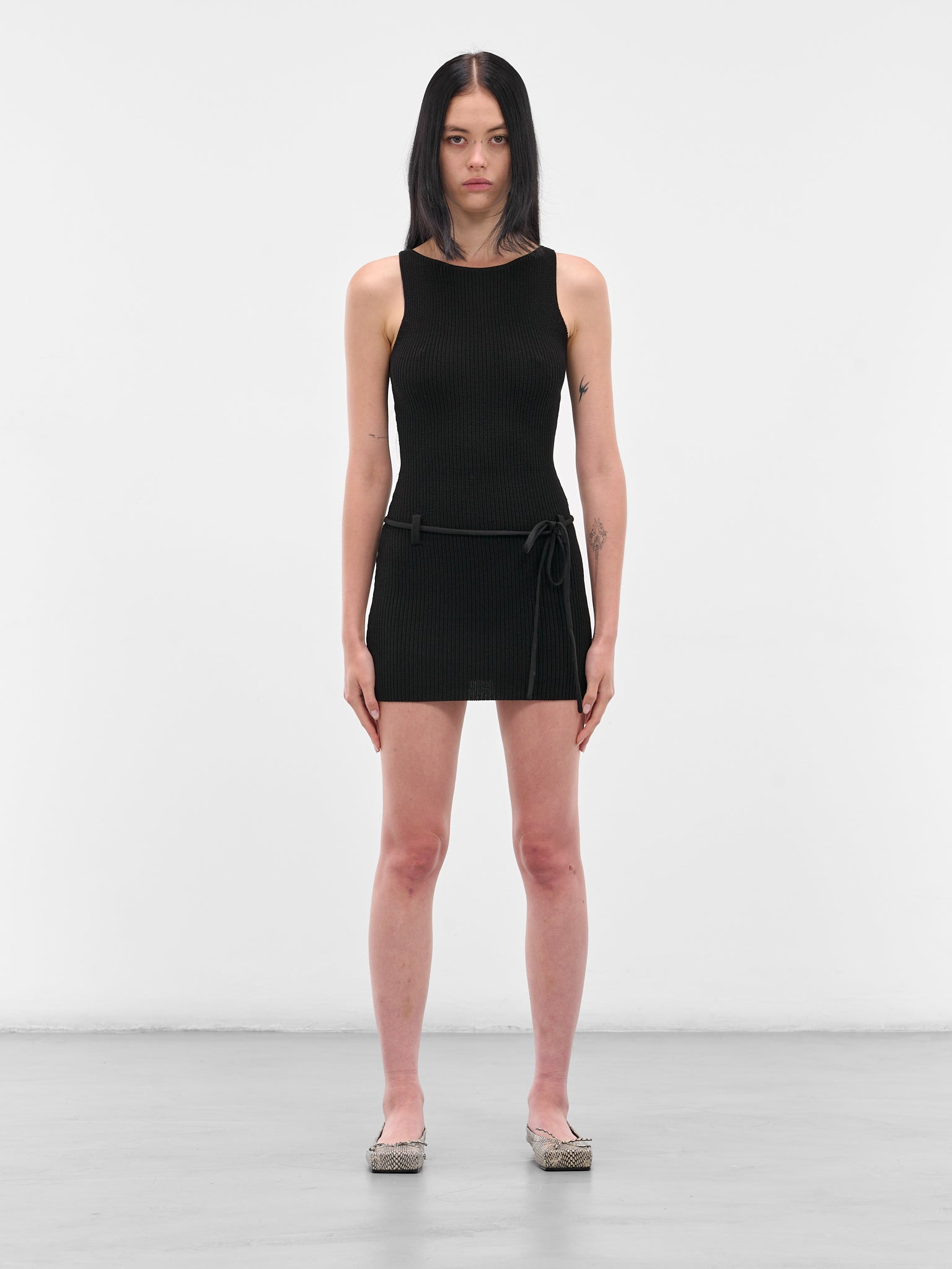 The black Zeal Mini Dress utilizes rib-knit construction and a self-tie fastening at the waist, offering an adjustable take on a slim, sleeveless mini silhouette. Featuring: • Slim fit • Round neck with shoulder straps • Sleeveless with armholes • Rib-knit construction • Belt loops with self-tie fastening at waist • Mini-length • Made in China • 90% Cotton 10% Silk • Standard sizing Model is 5'8" wearing size S. Bust: 28.5" Waist: 22.5" Hips: 33.5"