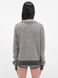 The gray Avel Knit Top is constructed with a spread collar and front button closure, featuring chest and flap pockets for subtle structure within a slim fit. Featuring: • Slim fit • Spread collar • Front button closure • Long sleeves • Chest pocket and buttoned flap pockets • Rib-knit cuffs and hem • Made in China • 54% Merino Wool 23% Cashmere 23% Silk • Standard sizing Model is 5'8" wearing size S. Bust: 28.5" Waist: 22.5" Hips: 33.5"