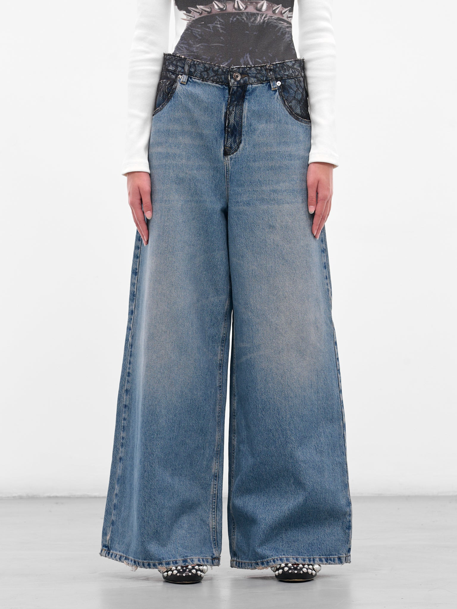 SUPERWIDE-LEG JEANS WITH LACE DETAILS