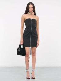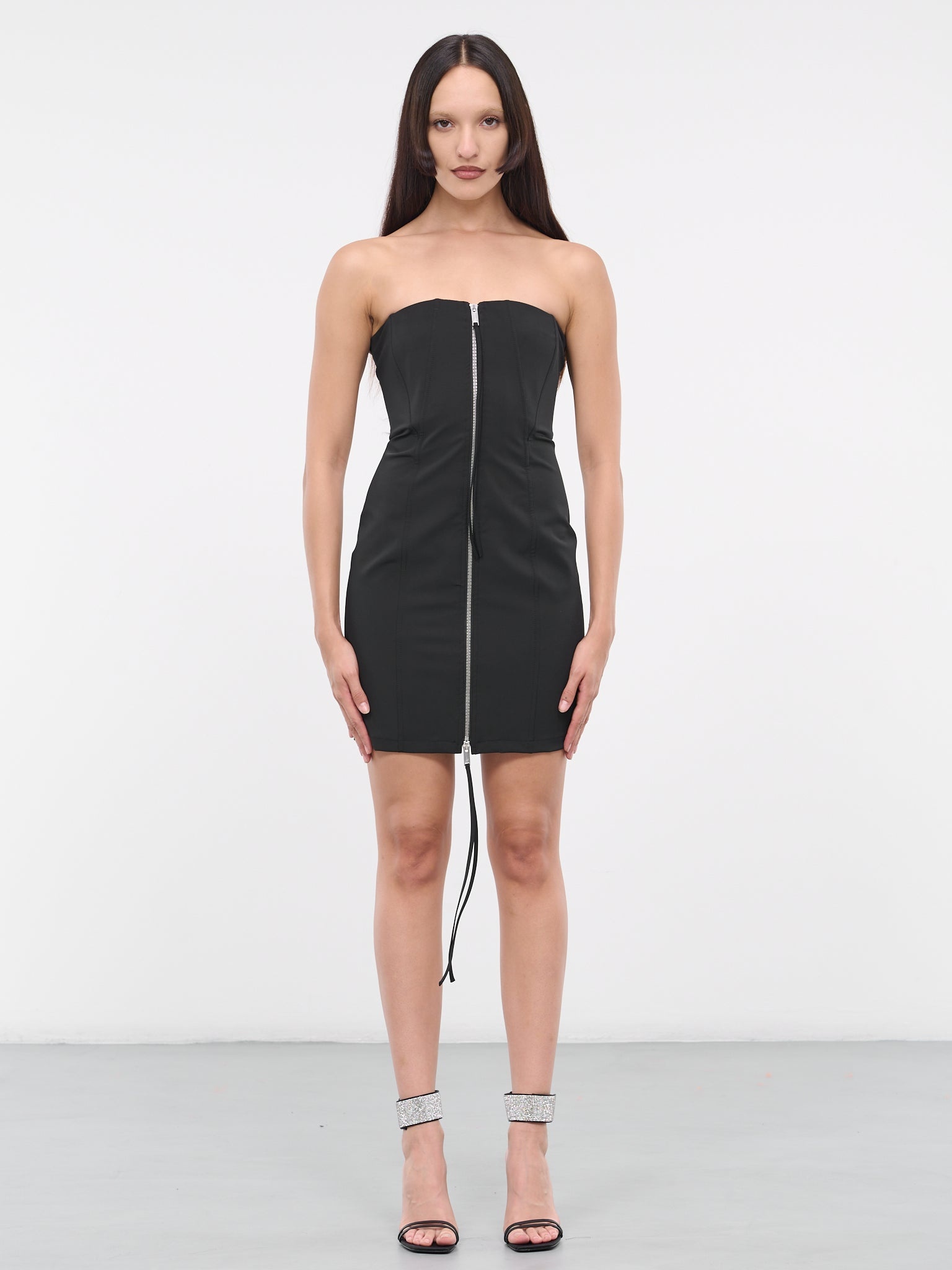 BLUMARINE black dress, integrated bodice, adjustable spaghetti straps, straight neckline, dual end zip closure, long puller, mini length, fitted. 95% Polyester, 5% Elastane Italian Sizing Model is 5'10" wearing size 38. Bust: 32" Waist: 24" Hips: 36"