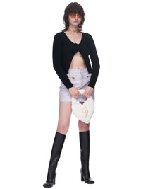 Blumarine mini skirt in lavender. Hook/zip closure, front & back zip pockets, regular fit. Imported Italian Sizing Composition: 100% Leather Model is 5ft 10” and is wearing a size 40. Bust: 32” Waist: 25” Hip: 36"