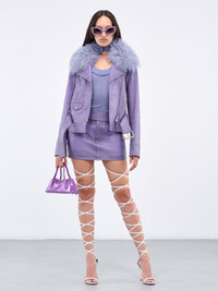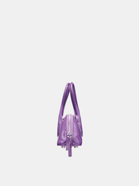 BLUMARINE bag in purple, baguette design, patent leather, double top handle, detachable shoulder strap, dual-end zip closure, embossed logo, silver-tone hardware, tonal lining. Made in Italy 100% Calf Leather