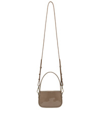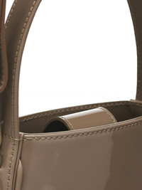 BLUMARINE bag in brown, mini design, patent leather, rhinestone logo, top handle, detachable cross-body strap, zip closure, fully lined. Made in Italy 100% Leather, Brass