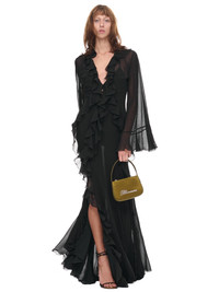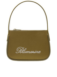 BLUMARINE bag in khaki green, satin construction, top handle, rhinestone logo, zip closure, gold-tone hardware, fully lined. Made in Italy 100% Satin, Metal