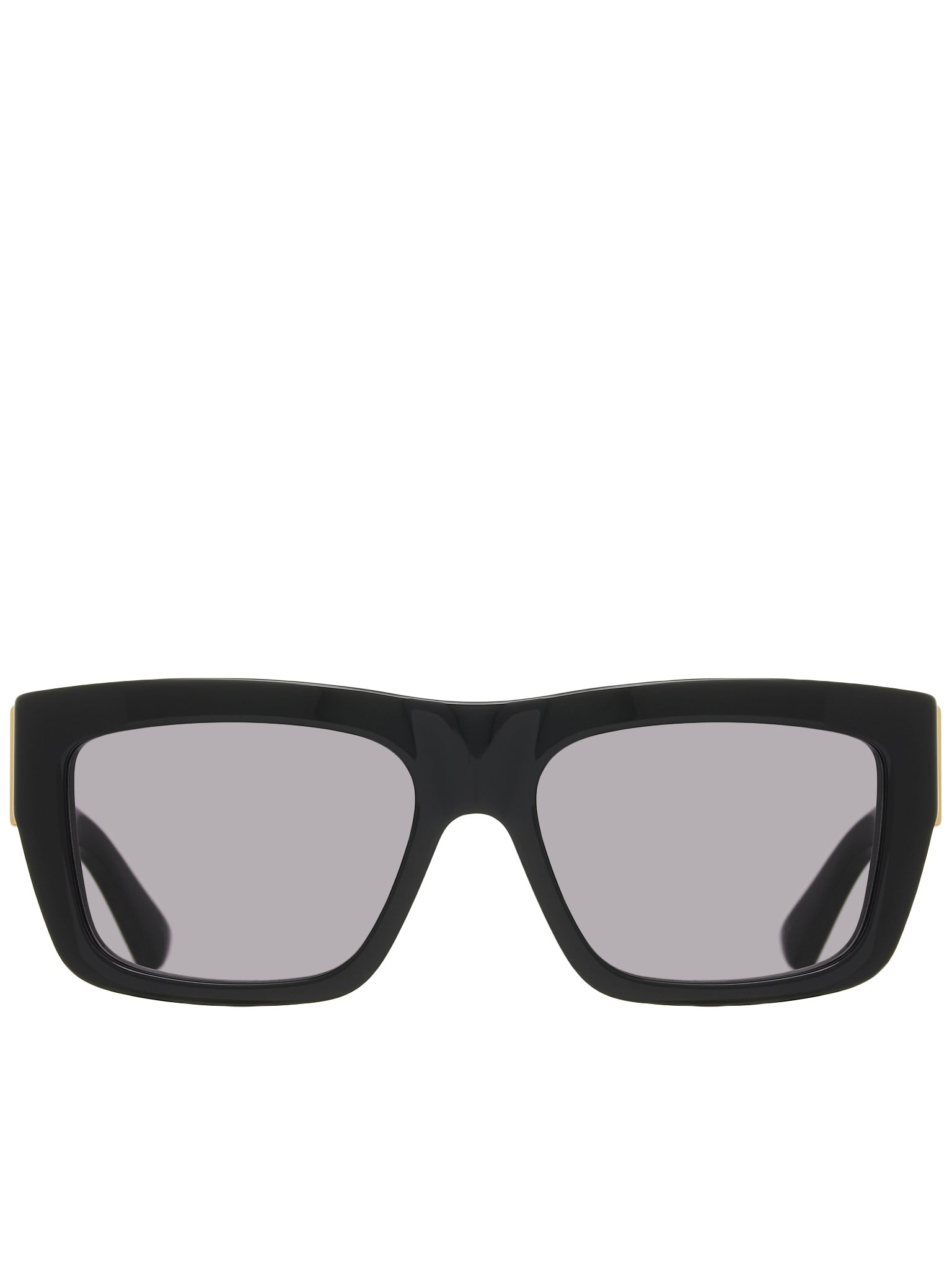 Bottega Veneta sunglasses in black, square design, gray lenses, integrated nose pads, branded gold-tone design at temples, case included. Made in Japan One Size Composition: 100% Acetate