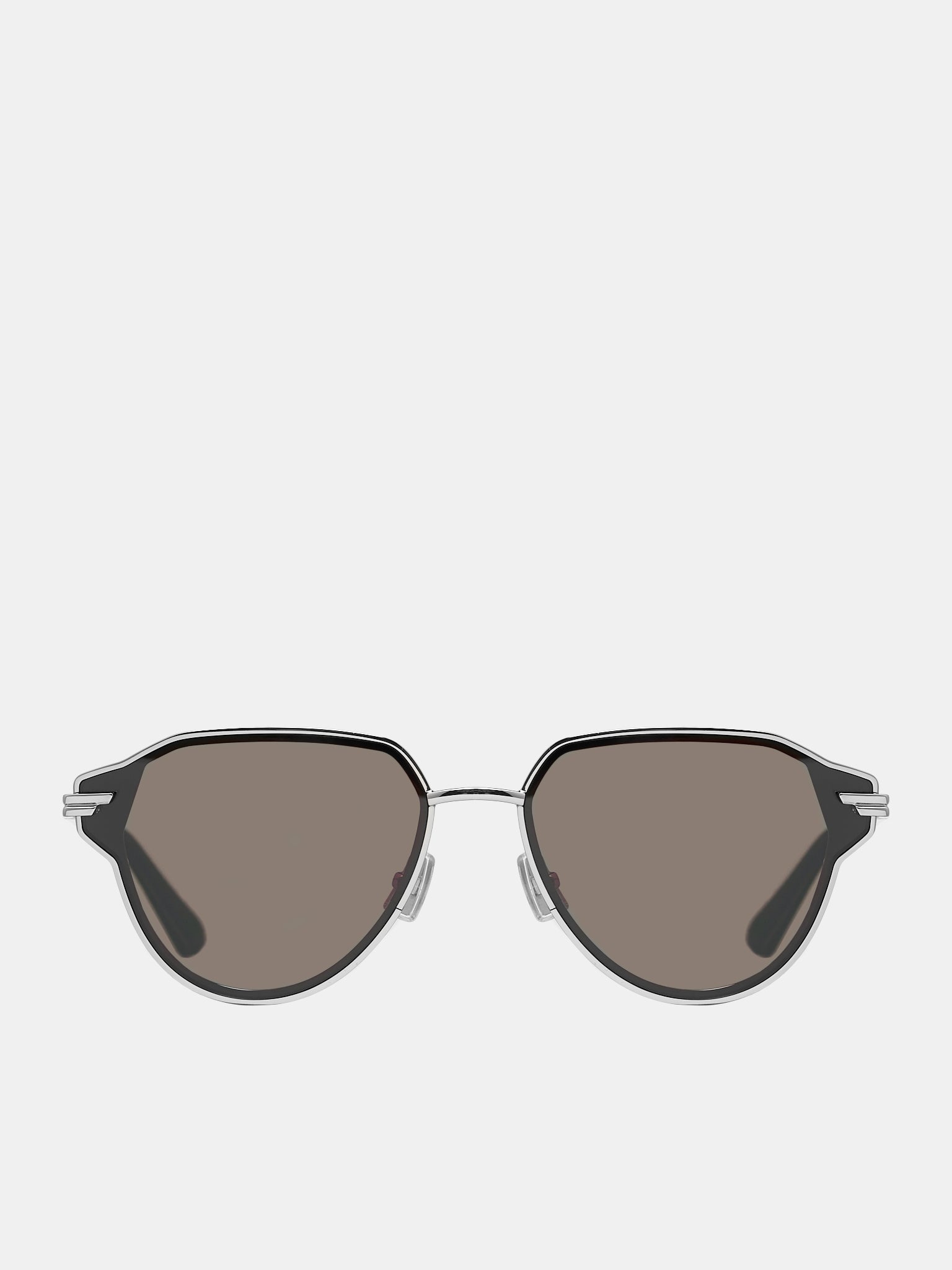 BOTTEGA VENETA silver & black sunglasses, aviator design, metal frame, bio nylon lenses, adjustable nose pads, recycled acetate temple tips, embossed logo, pouch included. Made in Japan Metal, Nylon