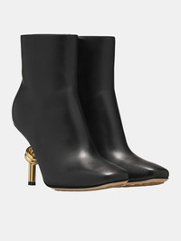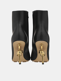 BOTTEGA VENETA black shoes, knot heel boots, lambskin leather, ankle length, pointed toe, inner zip closure, gold-tone hardware, bio-based rubber-injected & biodegradable leather outsole. Made in Italy 100% Lambskin Heel - 3.5"