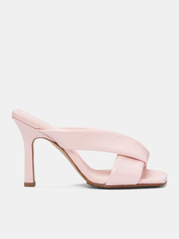 Rendered in a Seashell pink color, these Bottega Veneta mule sandals embody their luxurious minimalism. The padded and twisted tubular straps create a sculptural silhouette that is both bold and sophisticated. Featuring: • Crafted from shiny calfskin • Padded and twisted tubular straps • Slip-on mules design • Squared toe • 9 cm heel • Rubber-injected leather outsole • Lambskin lining • Made in Italy • Outer: 100% Calfskin | Lining: 100% Lambskin • Italian sizing