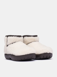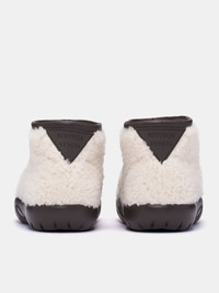 BOTTEGA VENETA boots in white & black, shearling & Nappa leather construction, below-ankle high, back logo patch, ultra-lightweight rubber sole, lambskin lining. Made in Italy Outer: Nappa & Shearling Inner: Lambskin European Sizing