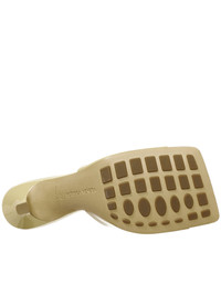 Bottega Veneta patent leather mules in porridge, open squared toebox, 9cm stiletto heel, rubber injected leather outsole. Made in Italy. Composition - Leather, Rubber. European sizing.