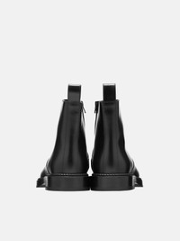 BOTTEGA VENETA black shoes, ankle length, round toe, coaxil-embellished welt, slip-on, back pull-tab, stacked leather heel, rubber pad. Made in Italy 100% Calfskin European Sizing
