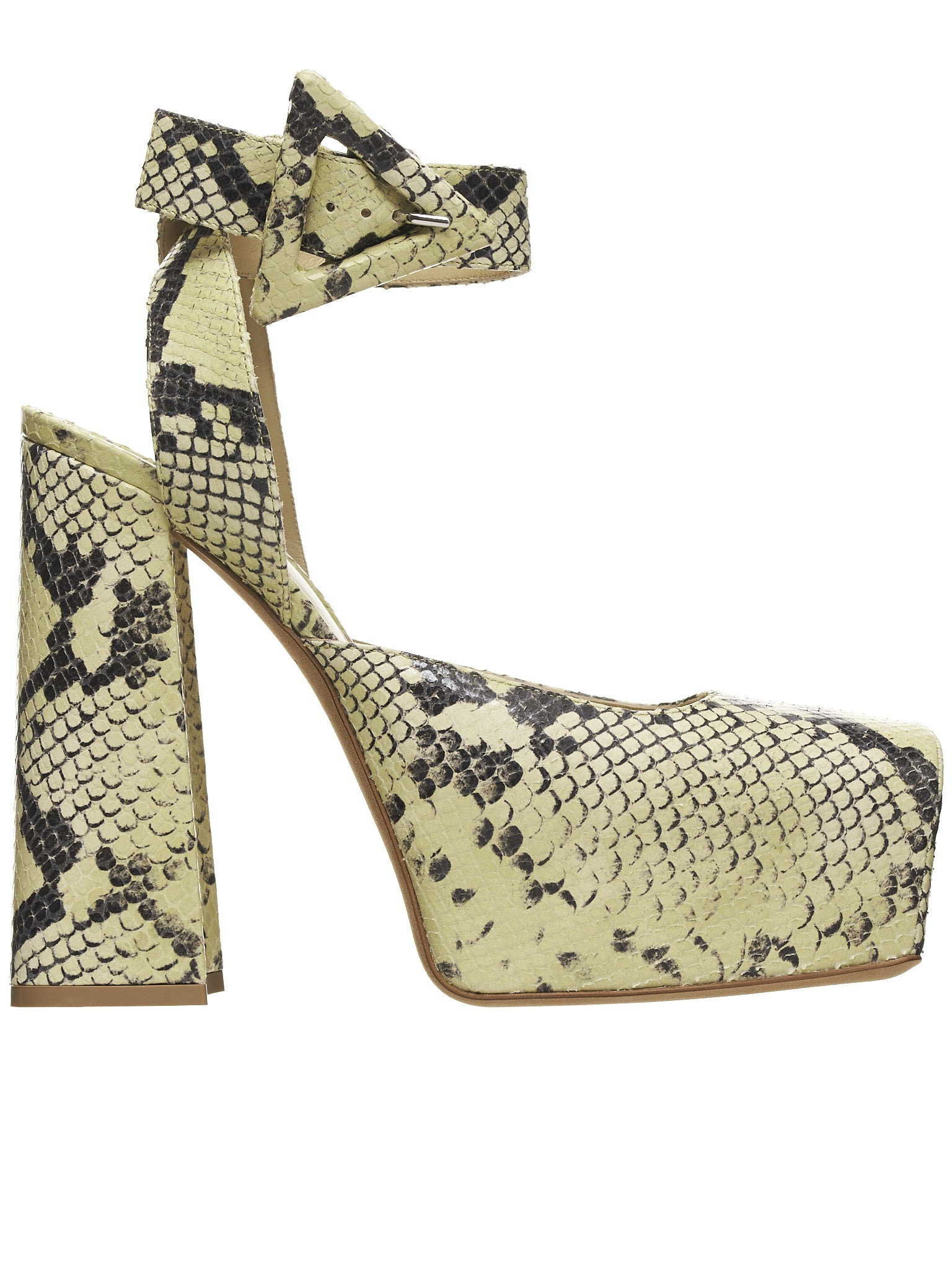 Bottega Veneta faded python print leather pumps, square toe, signature triangular buckle, 14cm heel. Made in Italy. Composition - 100% Goatskin. European Sizing.