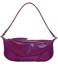 BY FAR bag in fuchsia, smooth cowhide leather, light grain & metallic sheen, soft rounded silhouette, curved leather handle, zip closure, panelled design, branded metal hardware, hand-applied matching enamel plating, lined. Made in Bulgaria Main - 100% Cowhide Leather Lining - 100% Cotton 2.6" Depth, 5.5" Height, 11" Width, 18.9" Strap Length, 11.4" Strap Drop
