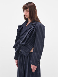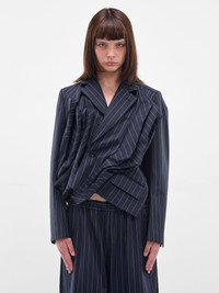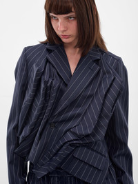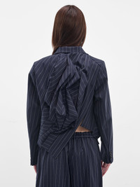 Navy Pinstripe Twisted Draping Blazer