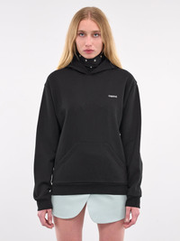 COPERNI hoodie in black, cotton-poly blend, paneled construction, high neck, hood, alien ears, press-studs, long sleeves, elasticated cuffs hem, front kangaroo pocket, straight hem, relaxed fit. Made in Portugal 79% Cotton 21% Polyester Standard Sizing Model is 5'8" wearing size S. Bust: 31" Waist: 23.5" Hips: 34"