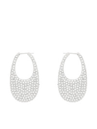 COPERNI earrings in silver, signature swipe design, crystal-embellished, embossed logo, huggie closure. 100% Metal, Crystal