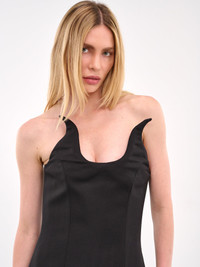 COPERNI x DISNEY dress in black, paneled construction, graphic neckline, strapless, back concealed zip closure, darted bodice, straight hem, mini-length, slim fit. French Sizing Model is 5'8" wearing size 36. Bust: 32" Waist: 24" Hips: 35"