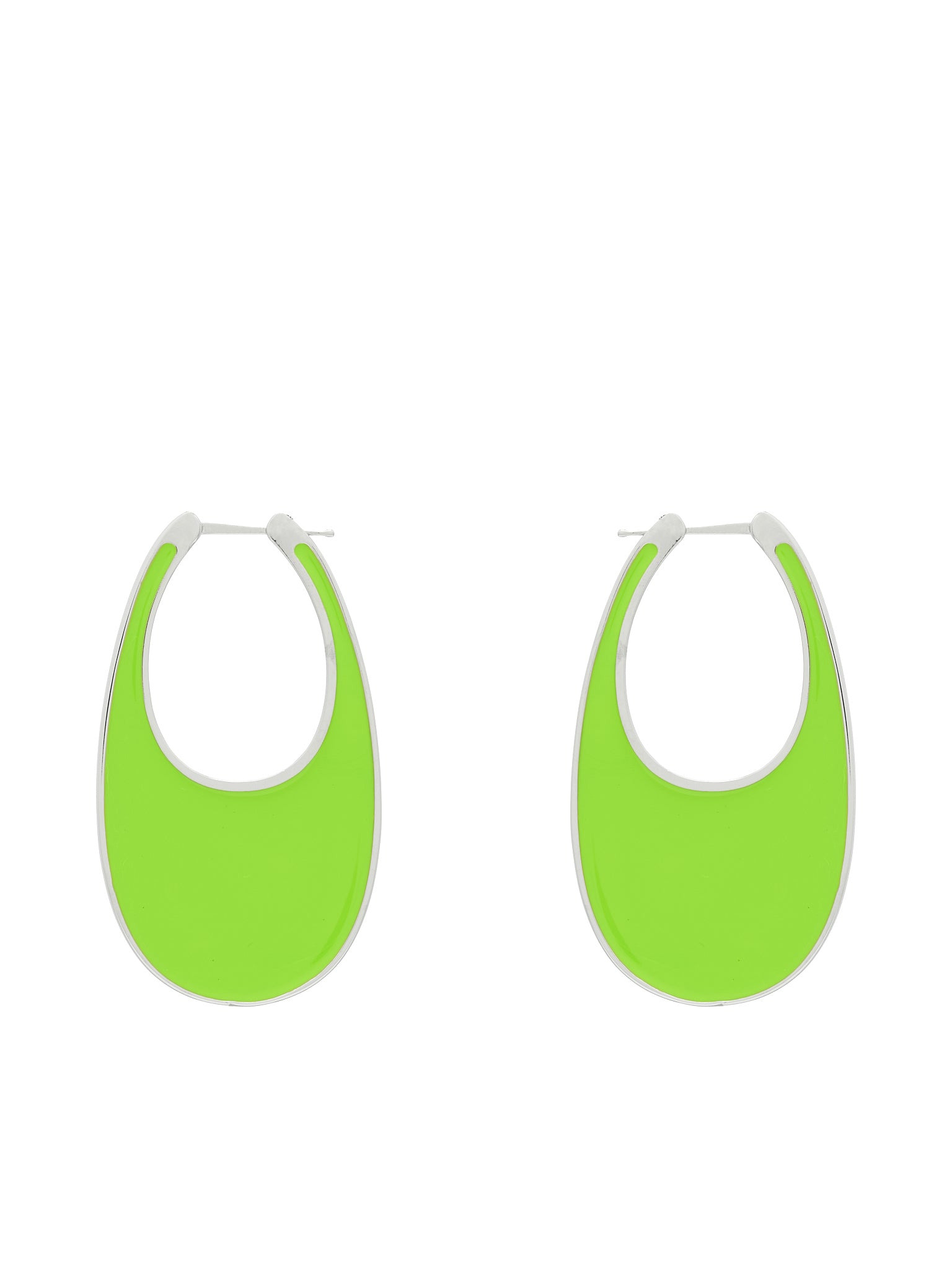 COPERNI earrings in lime green, signature swipe design, lacquered finish, embossed logo, english-lock closure. 100% Metal