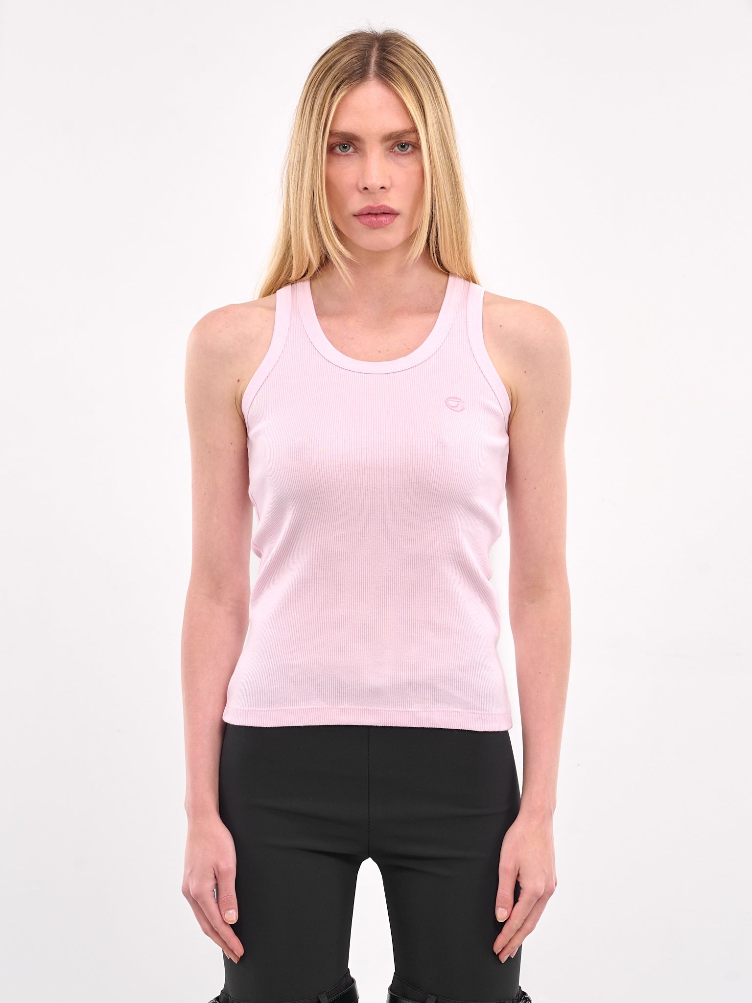 COPERNI tank in pink, paneled cotton construction, rib-knit, scoop neck, shoulder straps, sleeveless, armscyes, chest logo embroidery, straight hem, slim fit. Made in Portugal 100% Cotton Standard Sizing Model is 5'8" wearing size S. Bust: 32" Waist: 24" Hips: 35"