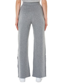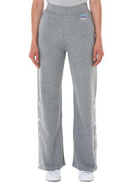 Courrèges flared lounge trouser in grey, lacquered press studs at outseam slits, side pockets, turn under bottom hem, tonal stitching. Composition - 100% Cotton Model wears a size 1.