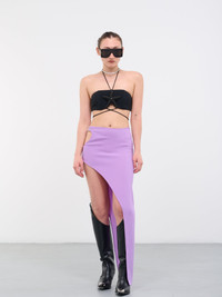 DAVID KOMA top in black, bra design, stretch cady, crystal hand-embroidered starfish detail, back zip closure, neck & back spaghetti cross-cross self-tie straps, lined, fitted. Made in UK UK Sizing Body - 52% Acetate, 45% Viscose, 3% Elastane Lining - 64% Viscose, 36% Polyester Detail - 50% Glass, 50% Acrylic Model is 5'8" wearing size 8. Bust: 32" Waist: 26" Hip: 32"
