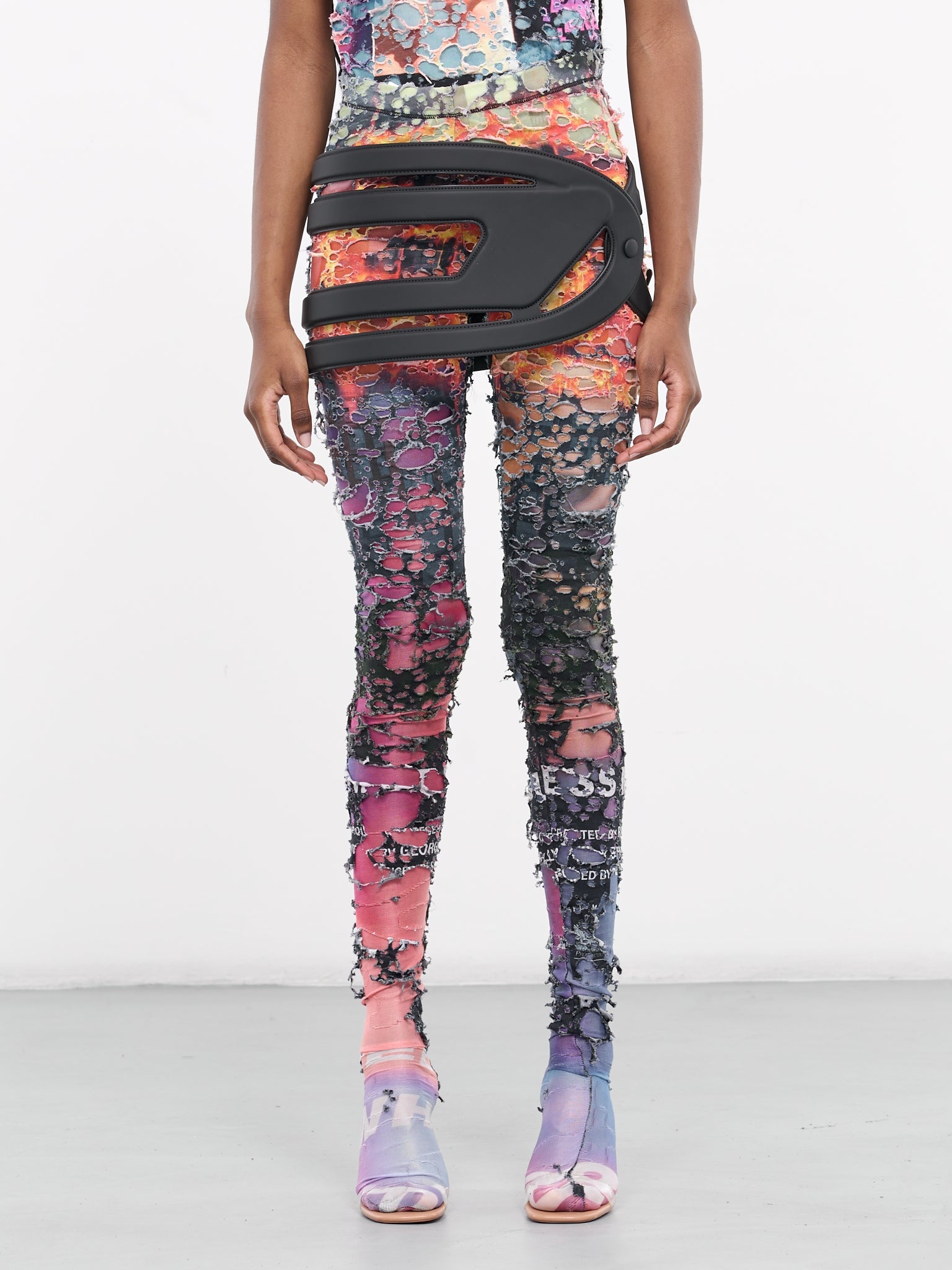 DIESEL belt in black, belt skirt design, polyurethane construction, signature D logo cut-out design, snap-button fastening. 100% Polyurethane One Size
