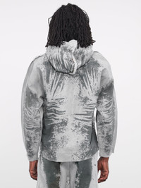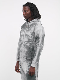 DIESEL sweatshirt in grey, hoodie design, paneled stretch cotton construction, sprayed & coated finish, distressing & raw hems, hood, adjustable drawstrings, front logo embroidery, long sleeves, kangaroo-style pocket, straight hem, relaxed fit. 98% Cotton 2% Elastane Standard Sizing Model is 6’2” wearing size M. Shoulders: 19” Chest: 38” Waist: 28”