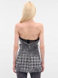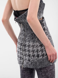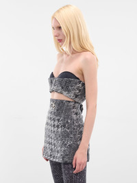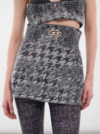 De-Orset-Fsh1 mini skirt/top hybrid in black cotton with laser-distressed jacquard weave and layered houndstooth over Prince of Wales. Featuring: • Slim fit • Cotton construction • Hybrid peplum skirt and top design • High-waisted • Logo cut-out metal plaque • Back two-way zip closure • Mini-length • Distressed jacquard weave with layered houndstooth and Prince of Wales motifs • Main: 100% Cotton Model is 5'9" wearing size S. Bust: 32" Waist: 25" Hips: 34"