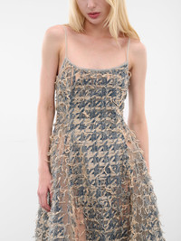 De-Sweeney-Long-Fsh midi dress in blue denim with a houndstooth jacquard weave and devore detailing. Featuring: • Slim fit • Denim construction with distressed houndstooth pattern • Semi-sheer devore finish • Scoop neckline • Spaghetti straps • Sleeveless with armholes • Loose flouncing • Midi-length • Lined • Main: 83% Cotton 17% Polyamide • Standard sizing Model is 5'9" wearing size S. Bust: 32" Waist: 25" Hips: 34"