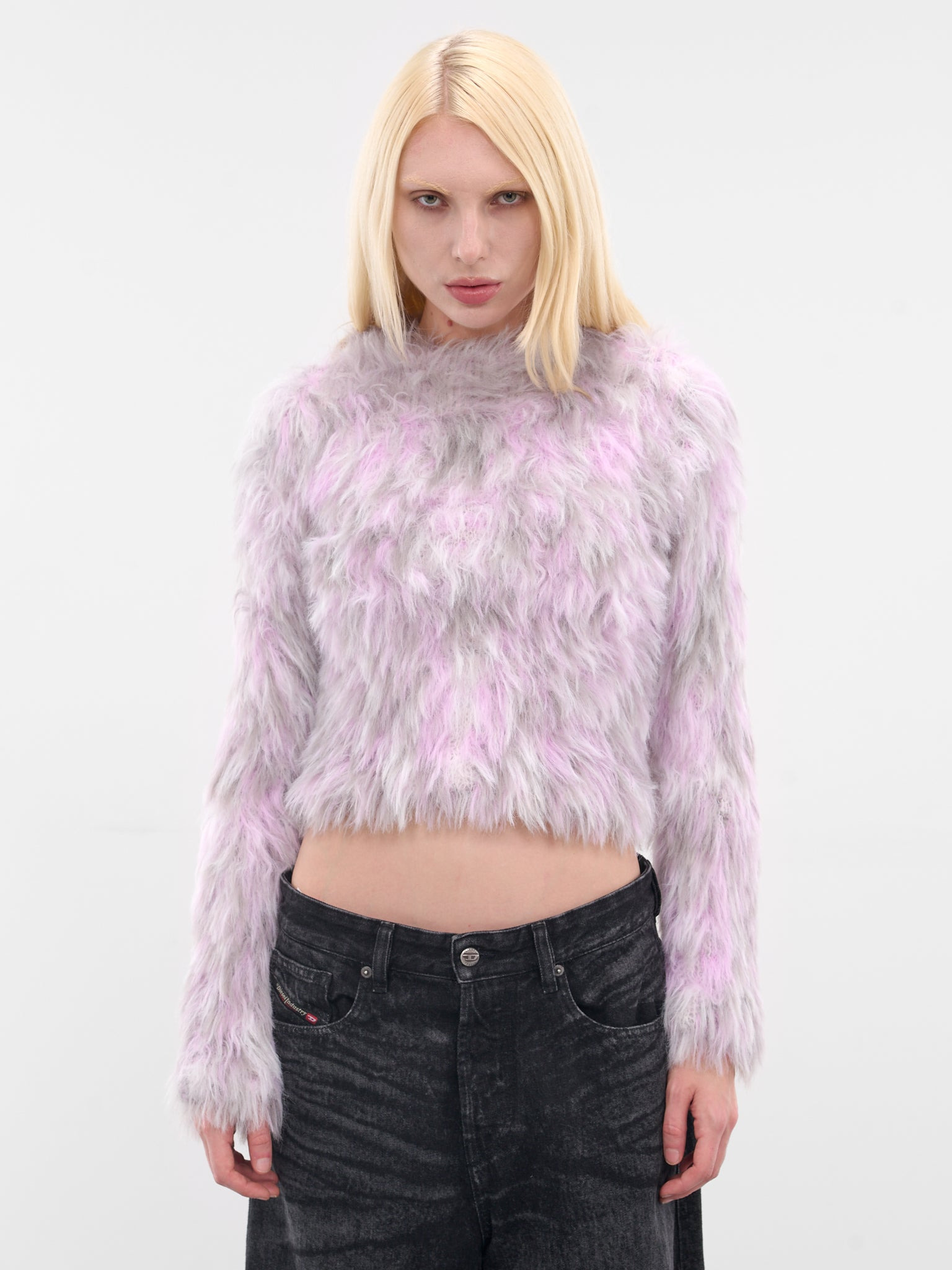 M-Annika sweater in white and pink fuzzy knit with a cropped slim cut and round neckline. Featuring: • Slim fit • Knit construction with long-pile fuzzy texture • Motley white and pink pattern • Round neckline • Long sleeves • Cropped length • Main: 86% Polyamide 8% Acrylic 6% Mohair • Standard sizing Model is 5'9" wearing size S. Bust: 32" Waist: 25" Hips: 34"