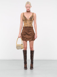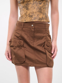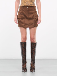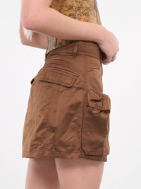 DIESEL brown skirt, cargo design, slub satin, mid-waist, button & zip-fly, flap pockets, logo detail, mini length, regular fit. 60% Cotton, 40% Rayon Italian Sizing Model is 5'9" wearing size 38. Bust: 32" Waist: 24" Hips: 34"