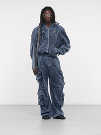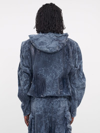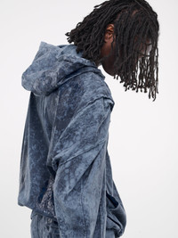 DIESEL sweatshirt in navy, hoodie design, paneled cotton construction, coating, acid wash effect, hood, front exposed two-way zip closure, chest metal logo plaque, long sleeves, kangaroo-style pockets, straight hem, oversized fit. 100% Cotton Standard Sizing Model is 6’2” wearing size M. Shoulders: 19” Chest: 38” Waist: 28”