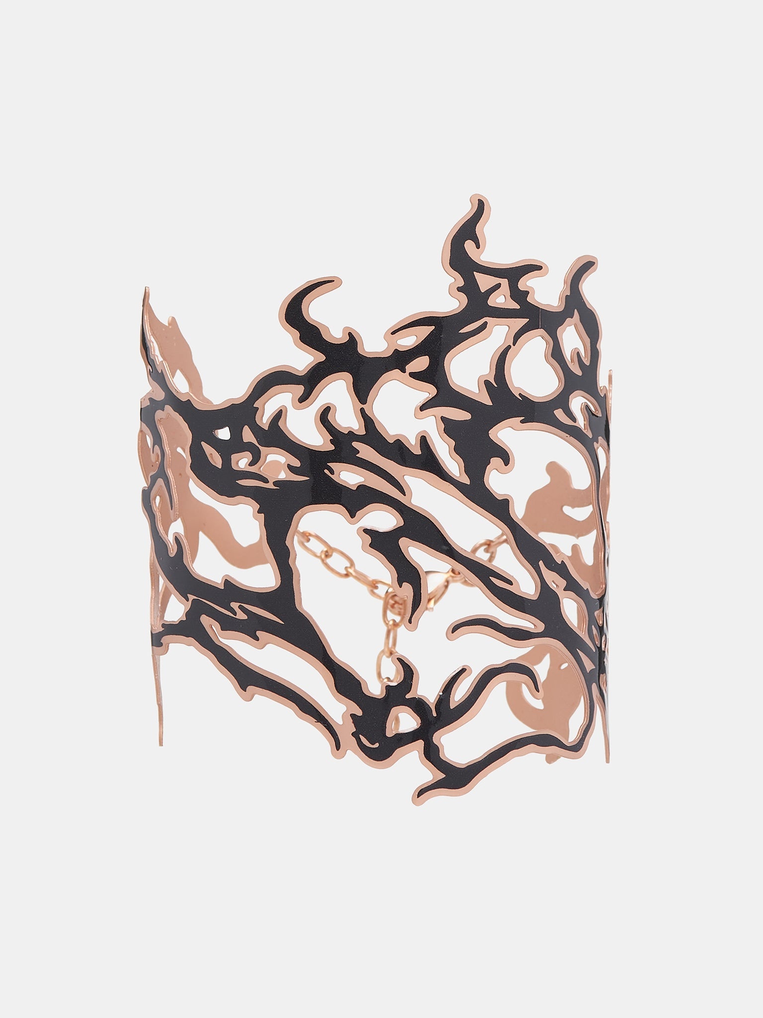 DIESEL bracelet in black & gold, brass construction, tattoo-shaped design, chain fastening, lobster claw clasp closure, adjustable fit. 100% Brass One Size