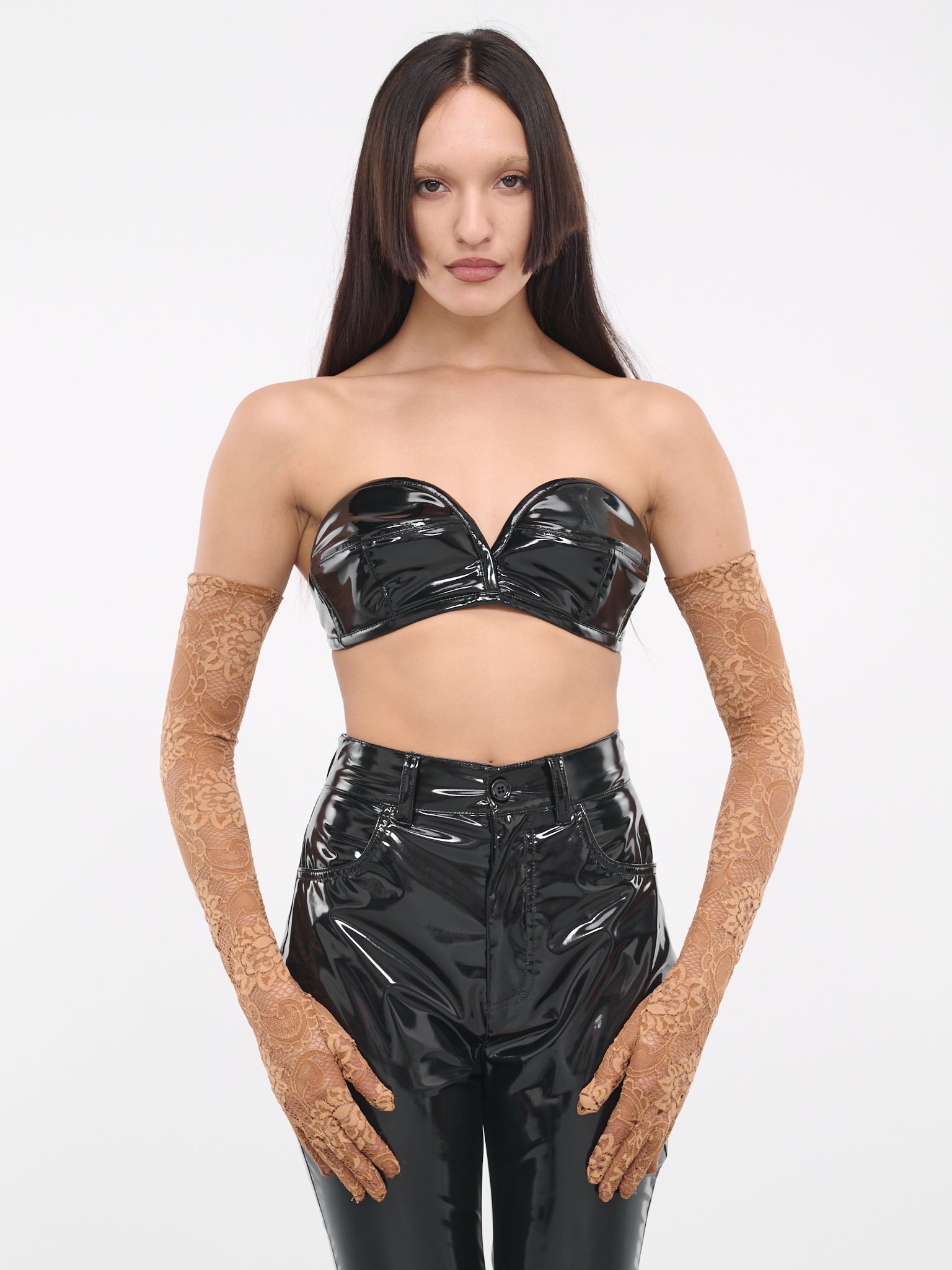 DOLCE & GABBANA beige gloves, sheer lace, full length, fitted. Made in Italy