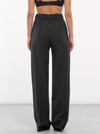 DOLCE & GABBANA pants in black, paneled stretch wool twill construction, high waist, elasticated waistband, side welt pockets, back concealed zip closure, traveler's crease, wide leg, relaxed fit. Made in Italy 96% Virgin Wool 4% Spandex European Sizing Model is 5'6" wearing size 40. Bust: 31" Waist: 24" Hips: 34"