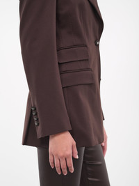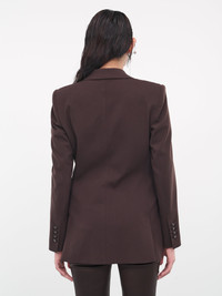 DOLCE & GABBANA brown jacket, blazer design, notched lapel collar, padded shoulders, single button closure, four button surgeon cuffs, chest welt & side flap pockets, back dual vents, fully lined, tailored fit. Made in Italy Italian Sizing Model is 5'10" wearing size 42. Bust: 31" Waist: 23.5" Hips: 35"