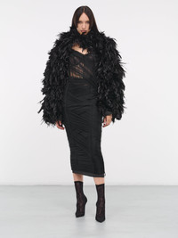 Tulle calf-length corset dress with draping