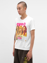 White cotton t-shirt with egg crack graphic print. Featuring: • Slim fit • Crewneck • Short sleeves • Egg crack graphic print • Made in Japan • 51% Polyester 29% Cotton 20% Rayon • Standard sizing Model is 6'0" wearing size M. Shoulders: 16" Chest: 26" Waist: 31"