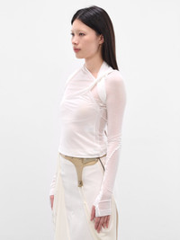 Crafted from a semi-sheer white fabric, this Hyein Seo long-sleeve top embodies an elegance. Layered tie detailing and a strategic shoulder cut-out create a sense of deconstructed asymmetry. Featuring: • Slim fit • Semi-sheer fabric with layered tie detailing • Shoulder cut-out with gathering • Elongated sleeves with thumbholes • Features a back cut-out and layered effect • Made in South Korea • Composition: 100% Tencel • Numeric sizing Model is 5'7" wearing size 1. Bust: 30" Waist: 24" Hips: 35"