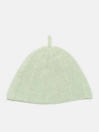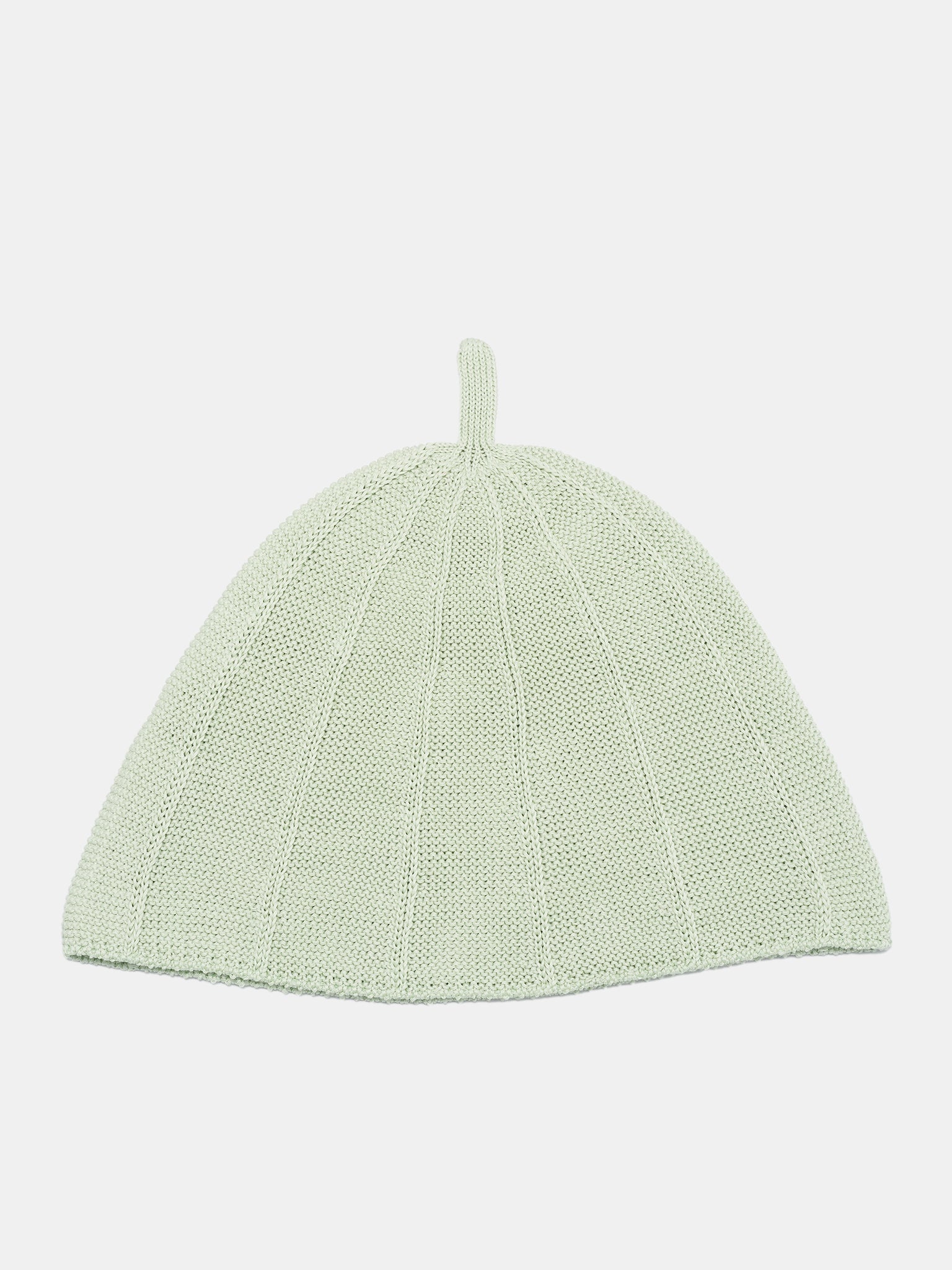 HOMME PLISSÉ ISSEY MIYAKE beanie in jade green, cotton knit construction, pleating throughout, top extended trim. 100% Cotton One Size