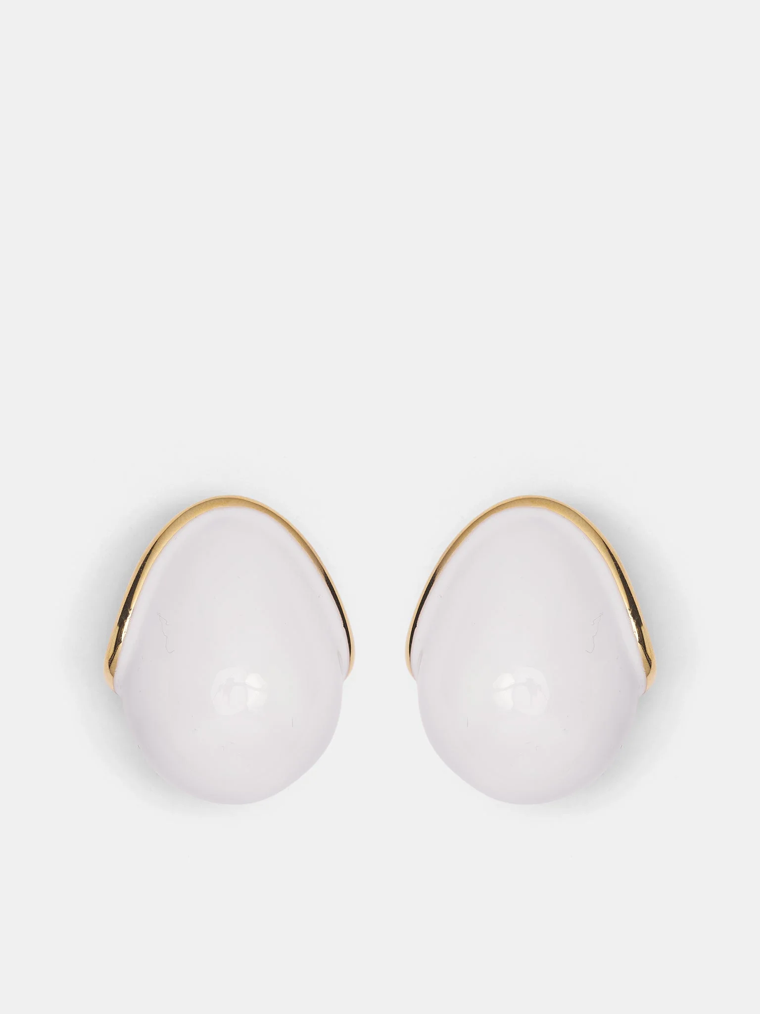 Earrings in gold and white constructed in brass with a grape-shaped design and asymmetric pin-back fastening. Featuring: • Brass construction • White coated finish • Grape-shaped design • Logo engraving • Asymmetric rond-carre pin-back fastening • One size