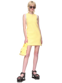 Jacquemus towel mini dress in orange, straight fit, mini length, crew neckline, open back with contrast straps. Made in Italy. French Sizing. Composition: 51% Polyamide/Nylon, 41% Organic Cotton, 8% Elastane. Model is 5ft 8” and is wearing a size 34. Bust: 32” Waist: 24” Hip: 35"