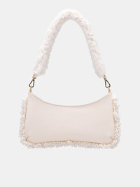 JACQUEMUS beige bag, leather construction, shearling finishes, detachable shoulder & crossbody straps, piped outline, interior patch pocket, zip closure, metal logo, gold-tone hardware, fully lined. Made in Italy Body - 100% Cow & Lamb Leather Lining - 100% Cotton 10.4" x 5.5"