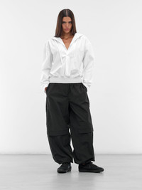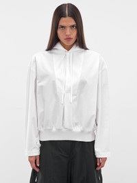 White hoodie in a relaxed fit with a hood, adjustable drawstring, and a rib-knit hem. Featuring: • Relaxed fit • Hood with adjustable drawstring • Front placket • Long sleeves • Button cuffs • Rib-knit hem • French sizing Model is 5'8" wearing size 36. Bust: 32.5" Waist: 24" Hips: 34"