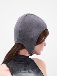 The gray garter strap beanie reimagines headwear with a shower-cap design in merino wool, anchored by a unique garter strap fastening. The architectural shape and fine knit add a utilitarian edge. Featuring: • Sculptural fit • Shower-cap silhouette • Garter strap fastening • Made in Italy • 100% Merino Wool • One size