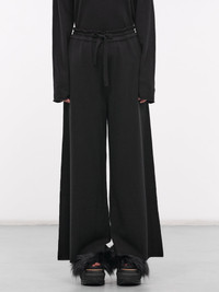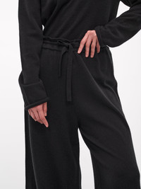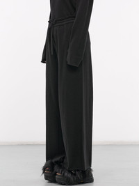 JIL SANDER pants in black, paneled construction, adjustable drawstring waist, wide leg, baggy fit. Made in Italy French Sizing Model is 5'9" wearing size 36. Bust: 30" Waist: 23" Hips: 35"