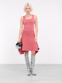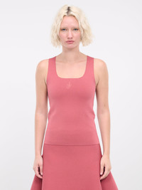 JW ANDERSON top in pink, mid-weight viscose-poly blend, rib-knit construction, scoop neck, sleeveless, shoulder straps, armscyes, chest logo embroidery, straight hem, slim fit. 84% Viscose 16% Polyester Standard Sizing Model is 5'9" wearing size S. Bust: 32" Waist: 24" Hips: 34"
