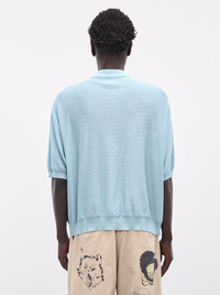 Knit x 8oz Denim Coverall Polo Shirt - Sax