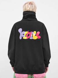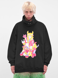 The black sweatshirt features a front graphic print, back logo print, and sculptural high neck with bungee drawstring and eyelets. Its dropped shoulders, long sleeves, and oversized cut enhance its effortless aesthetic. Featuring: • Oversized fit • Front graphic print and back logo print • High neck with eyelets and bungee drawstring • Dropped shoulders and long sleeves • Elasticated cuffs and hem • Made in Japan • 100% Cotton • One size